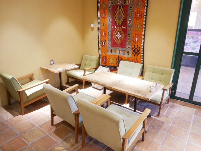 テーブル席以外にもソファー席が用意されており、ゆったりとくつろぎながら食事やスイーツを楽しむことができます。
