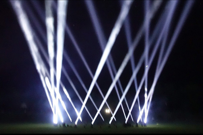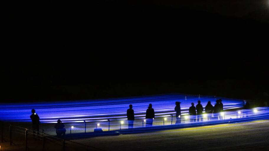 夜が更けると、炎と光が織りなす幻想的な「光りの輪」ショーが観客を魅了!