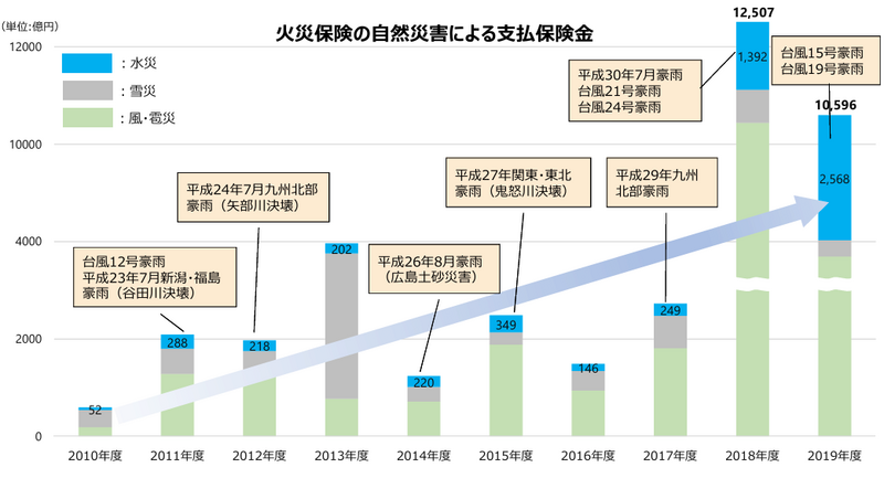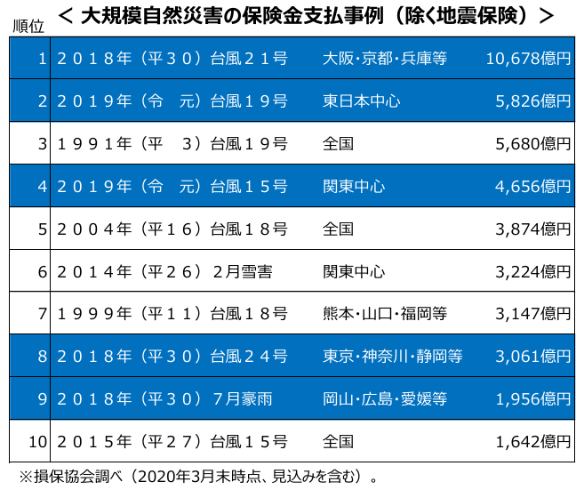 このような大規模災害は、保険システム全体の財務基盤に大きな負荷がかかることになり保険料の見直しに繋がっています。