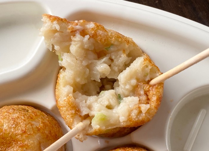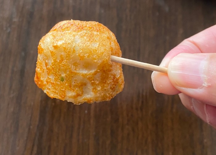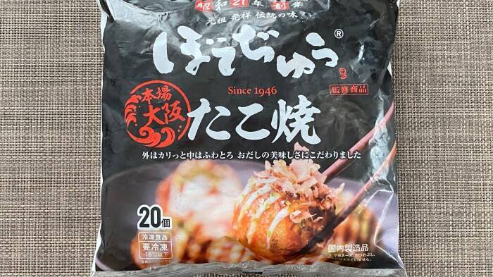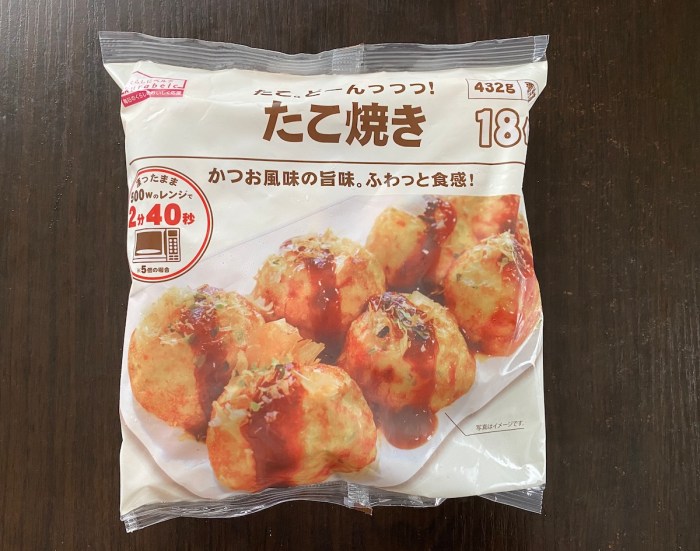 それにしても、全体的にフワッとしたたこ焼きながらあげ玉の食感がいいアクセントになっていて新しい扉を開いている。通常、冷凍たこ焼きは普通サイズの20gか大粒の30gであることがほとんど。そこを24gで攻めたのは新しいし面白い。