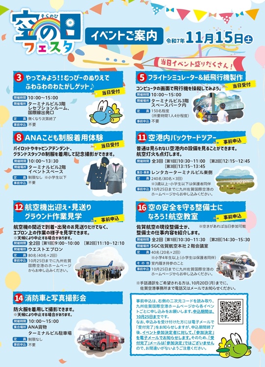 問い合わせ:0952-46-0150(九州佐賀国際空港 空の日フェスタ実行委員会事務局)