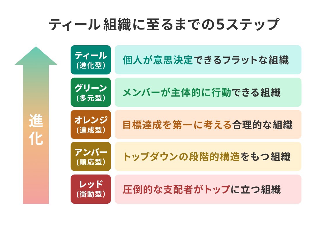 ティール(進化型):自主経営、全体性、進化する目的を持つ