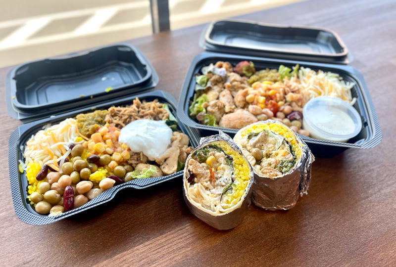 ここはブリトーの概念をくつがえす、テンション爆上がりのフード天国!大判トルティーヤにプルドポークやチキン、ライス、ビーンズ、チーズ、特製ソースをぎゅっと巻いた一品は、圧倒的ボリュームで中毒性MAX。写真は看板の『ブリトー』&『ブリトーボウル』。どちらもボリューミーで超うまい!