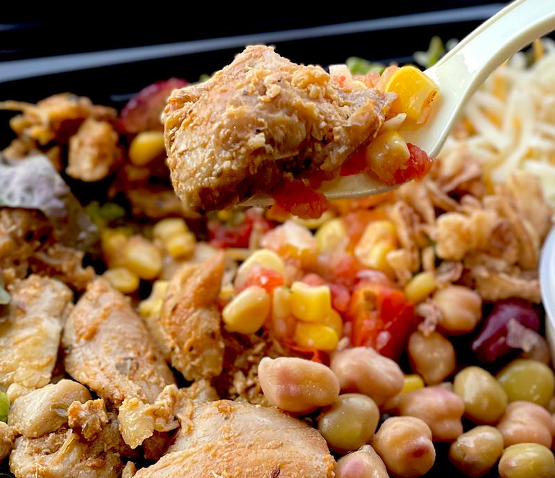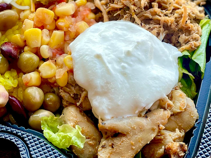 メインは、超ホロホロのプルドポークと香ばしくジューシーなグリルチキンの2種(ミックス可)。長時間じっくり仕上げたお肉は旨味ぎっしりで満足感も◎ 食べやすさ抜群で、ひと口で食欲の導火線に火がつきます(笑)。噛むほどあふれる旨味、ぜひ体験して!