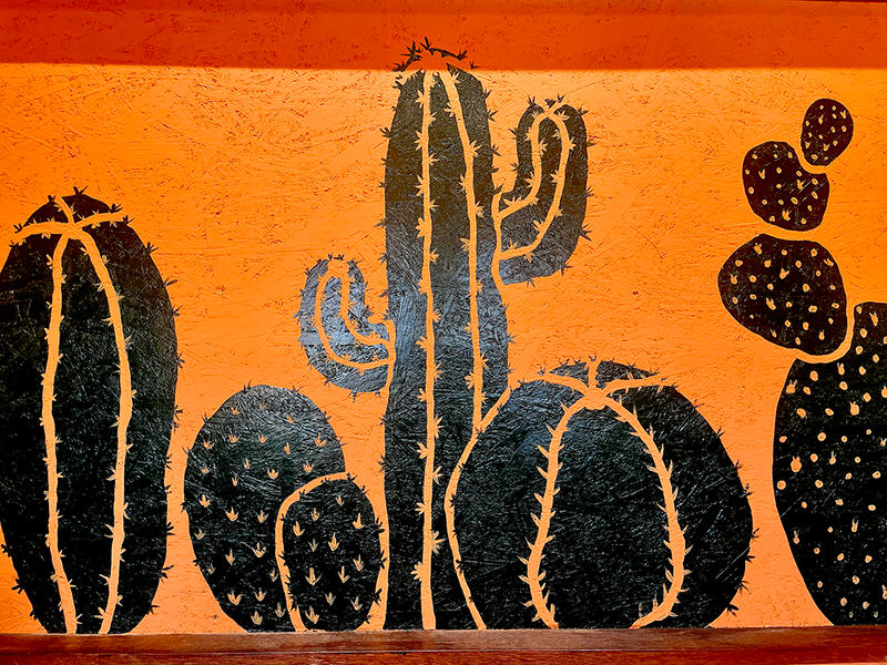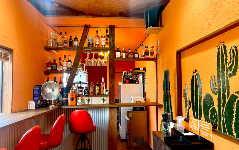 店内のサボテンやドクロなど、メキシカンで洒落たインテリアも最高。クリスティーンさん作のサボテンは、ロンドンの美術学校で培った実力が光る完成度で、フォルムも抜群。センスの良さが空間全体を引き締めます。