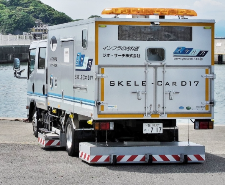 このトラック「スケルカー」は、荷台の底の面、地表から10センチくらいの位置に、地面と平行にマイクロ波を出す装置がついていて、マイクロ波を照射しながら、その反射で空洞を探し当てます。同じ空洞でも水道管などは、連続して反射があるから空洞ではない、と除外していきます。同時に、GPSで位置情報も取っているので、空洞の場所を、地上の景色と連動させてピンポイントで判別できるんです。