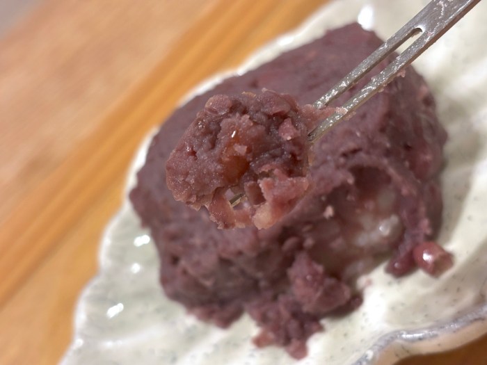 スーパーのおはぎにありがちな、ベタ〜っとした甘さではないし、あんこの粒感も絶妙。ほのかに塩味がきかせてあるのがアクセントになっている。
