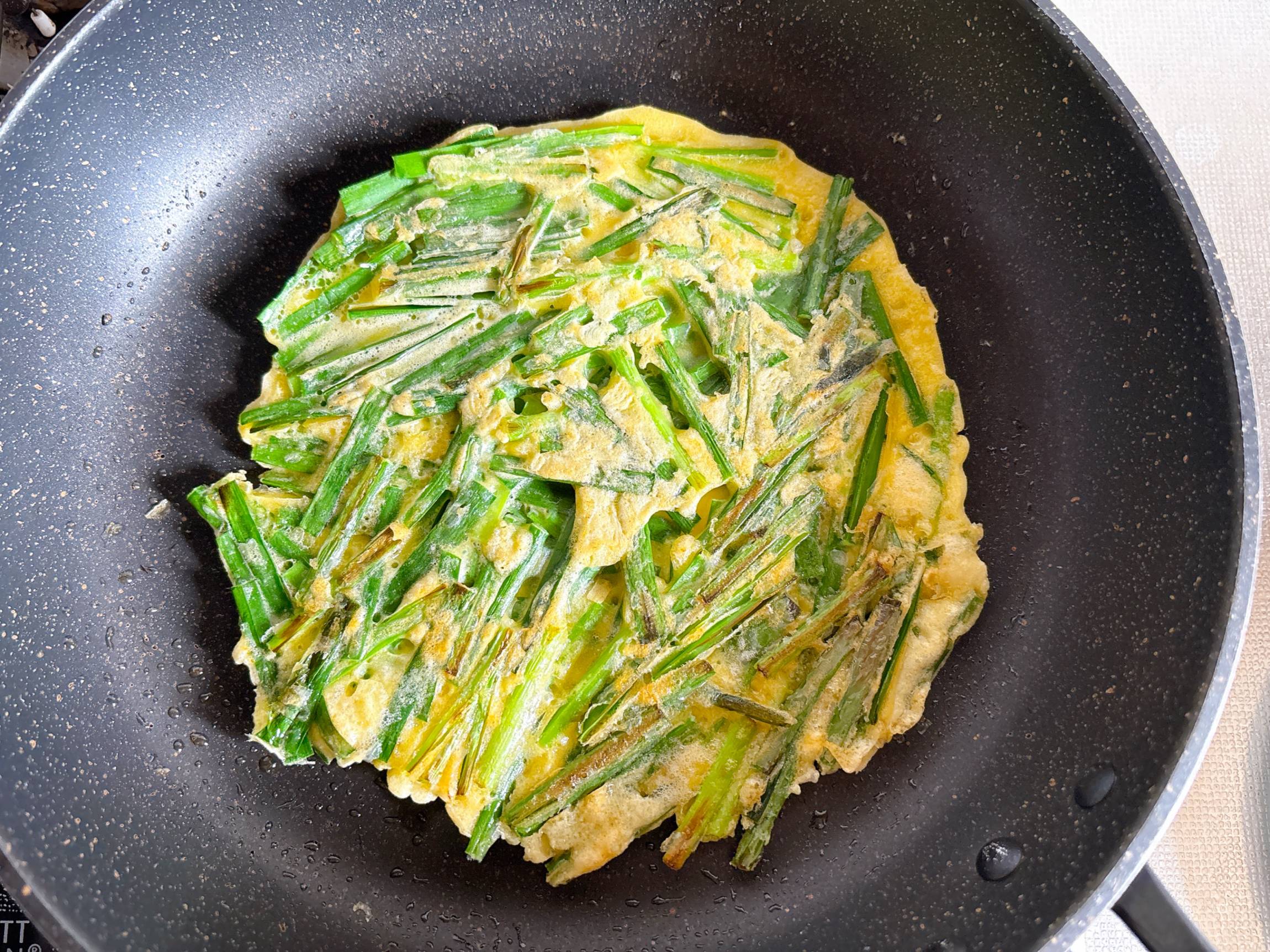 片栗粉と卵だけで作る簡単「ニラチヂミ」