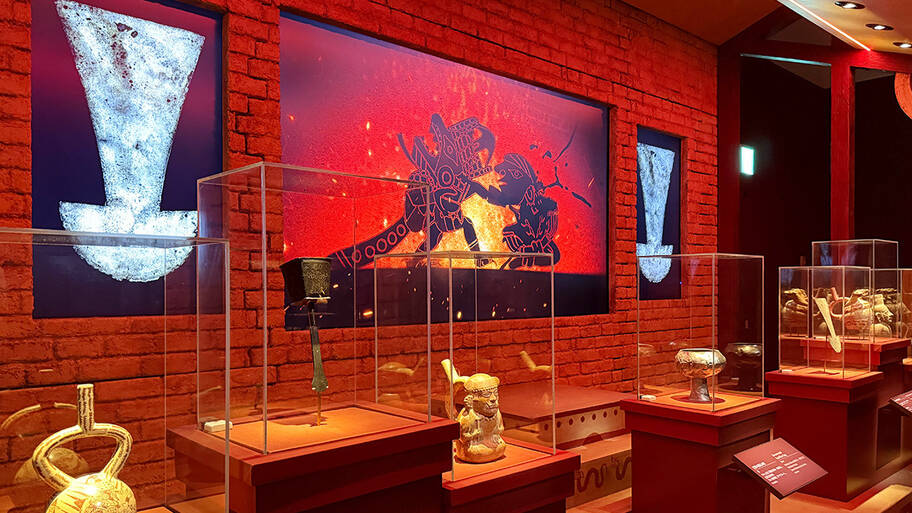 黄金の装飾品や精緻な祭祀道具などを通し、古代アンデスの叡智と美を五感で感じられる。