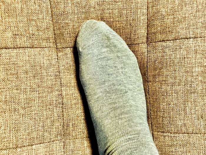 実際に一足履いてみた。薄すぎず厚すぎない普段使いしやすい靴下って感じだ。