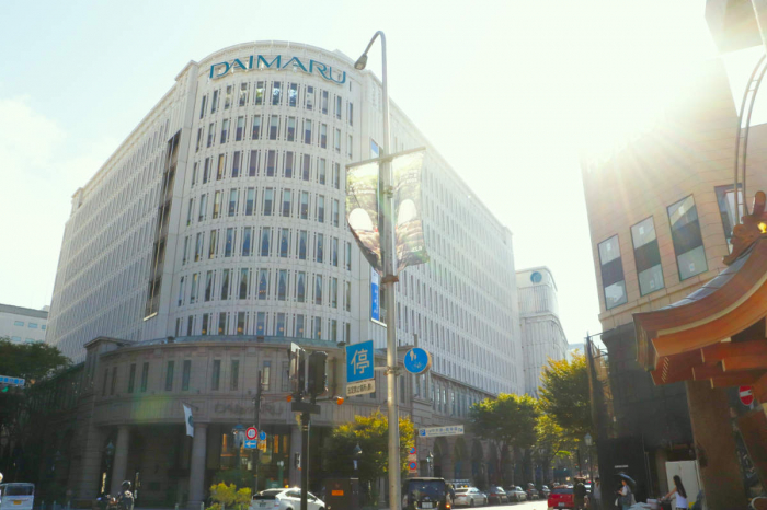 道路を挟んで右手奥には『大丸神戸店』がそびえます。伝統的な和の建築と洋風意匠の対比がイイッ!