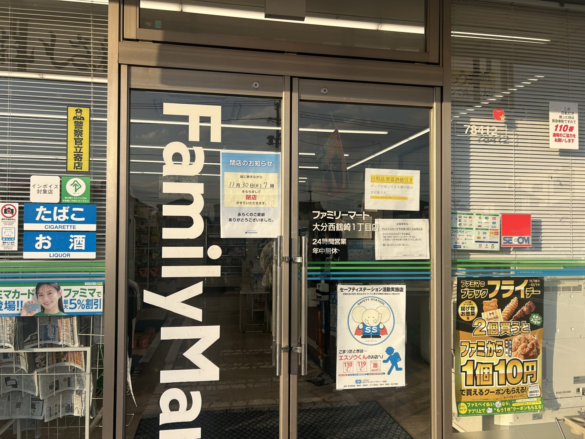 大分市の『ファミリーマート西鶴崎一丁目店』が閉店するそうです