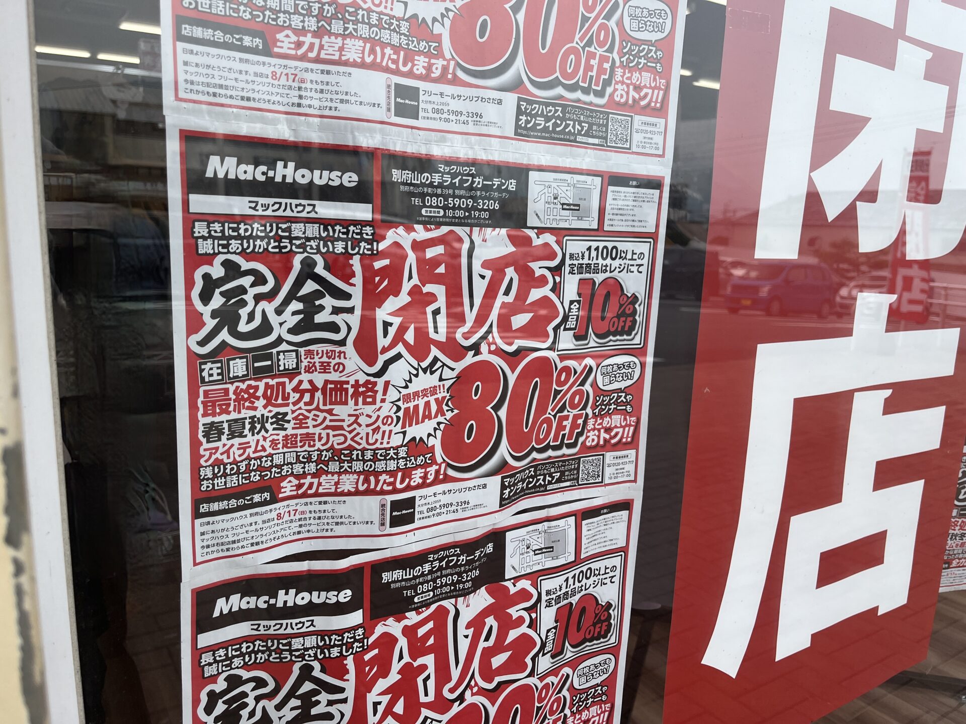 別府市にある『マックハウス 山の手ライフガーデン店』が閉店するようです。