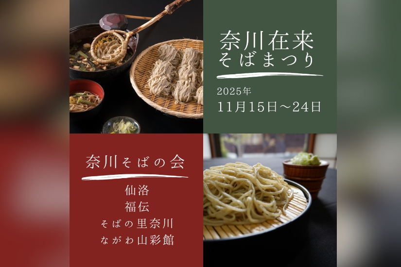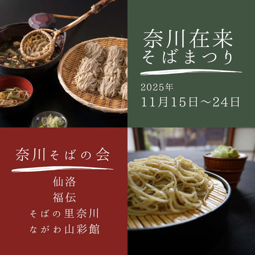 2025年11月15日(土)から11月24日(月)まで、長野県松本市奈川地区にある奈川そばの会の4店舗(手打ちそば 福伝/御食事処 仙洛/そばの里奈川/ながわ山彩館)で、『奈川在来そばまつり』が開催。イベント期間中「ながわ山彩館」では、かつて奈川で行われていた"天日干し在来そば"という伝統製法で仕込んだそばが復活。他3店舗では、例年どおり奈川在来そば(通常乾燥)が提供されます。