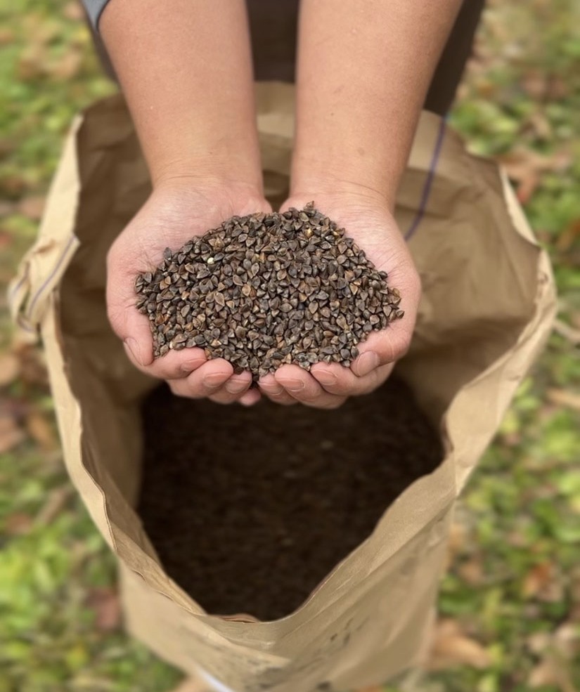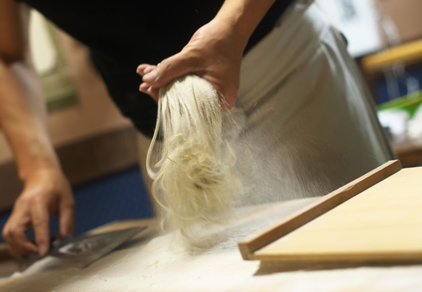 奈川在来そばは、奈川地区固有の品種改良をしていない原生種で、畑で雨風によって茎が倒れても翌日には穂先が天に向って起き上がり、実を守ろうとする姿から「天昇のそば」とも言われています。年間生産量が少なく、そば通の間では"幻のそば"とも呼ばれているそう。