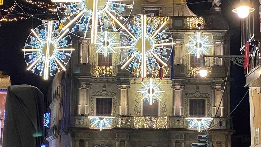 【聖籠町・メニークリスマスツリー】聖籠町町民会館がきらめくクリスマスツリーで華やぐ!