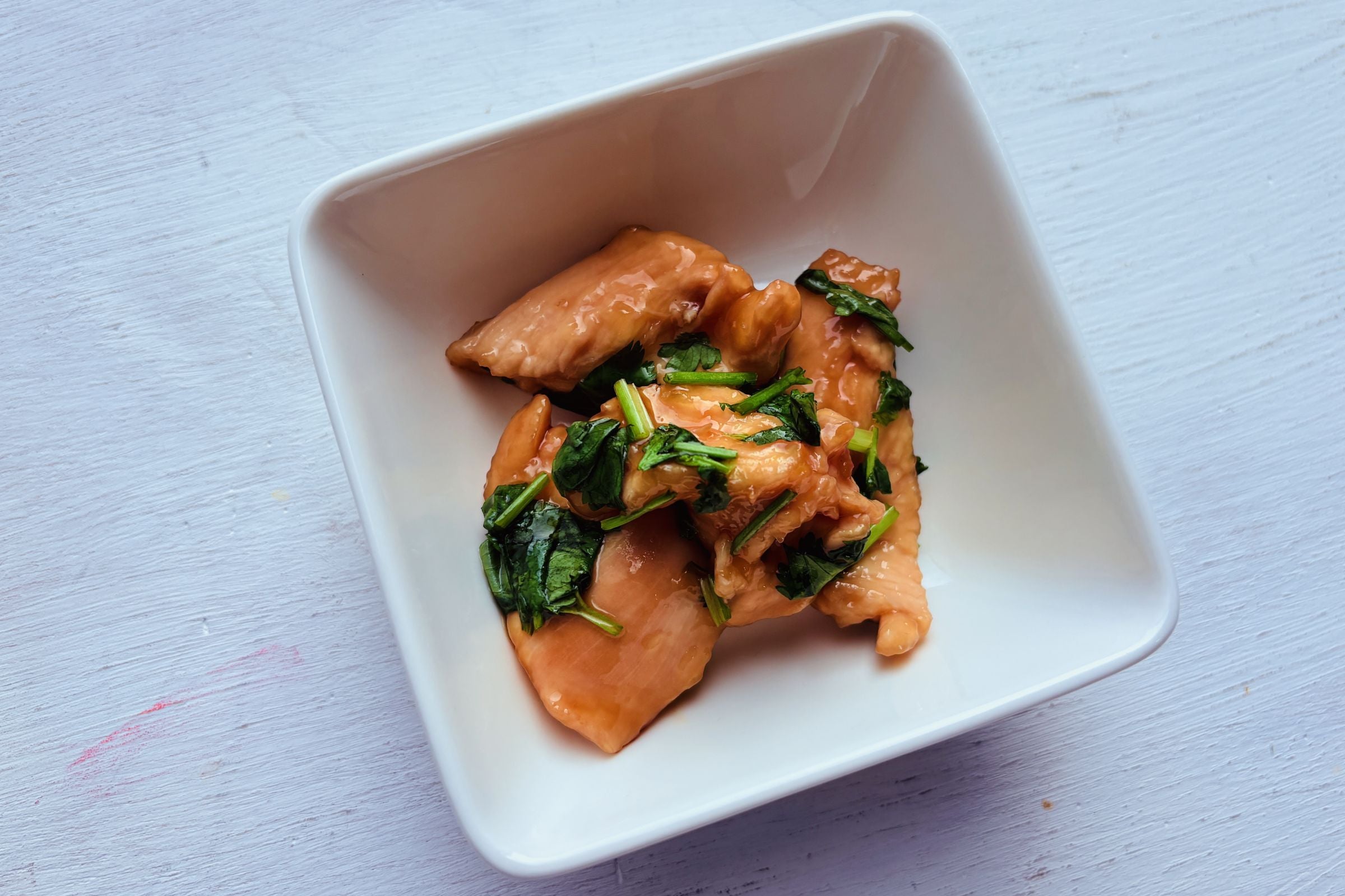 鶏胸肉1枚塩(適量)料理酒(適量)片栗粉(適量)味付け用:ポン酢/お好みで黒酢/醤油/刻んだパクチー、もしくは小ネギ (各種適量)