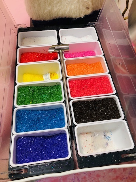 粒の小さいザラメを使うことで普通のわたあめよりベタベタしないそうです。