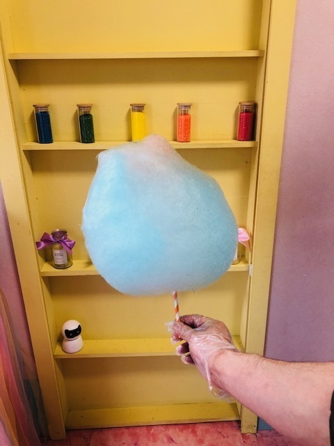 友人がわたあめ作り(550円〜)に挑戦しました。