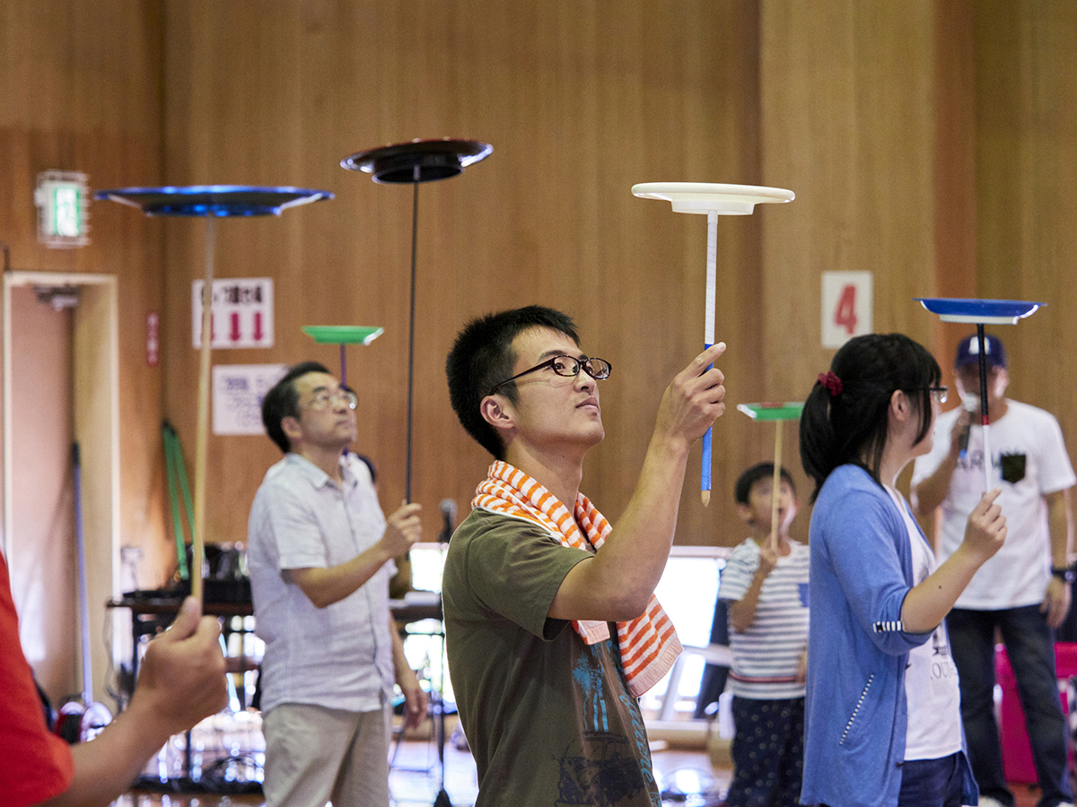 観客の皆さんは、予想以上に真剣に皿回しへ挑戦している参加者の姿に新鮮な驚きを感じることでしょう。また、それぞれの皿回しのレベルを測る「級位」や「段位」の認定会、初心者向けのワークショップも開催され、観覧だけでなく実際に体験もできるイベントです。