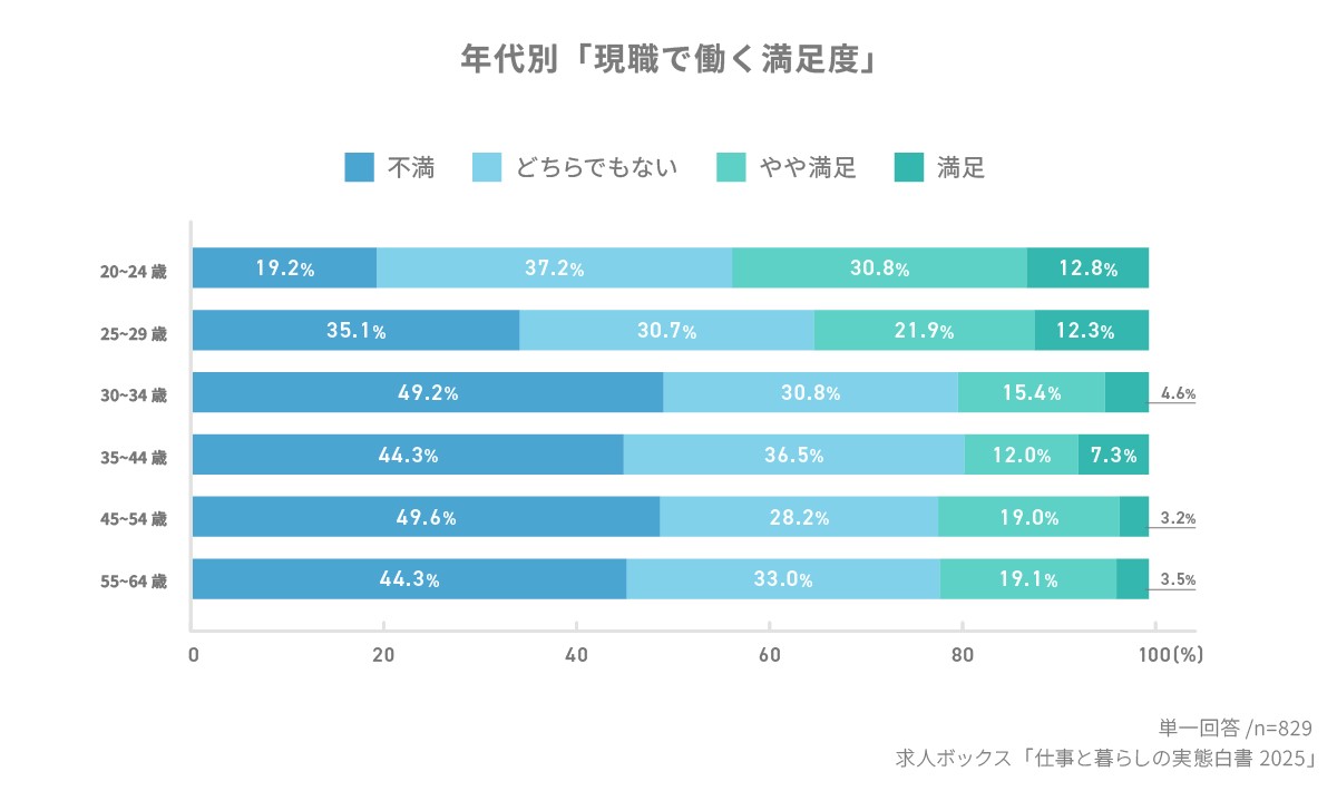 「安定なのに不満」――正社員の半数が現職に不満、見えてきた“働く満足”の条件とは|求人ボックス 「仕事と暮らしの実態白書2025」