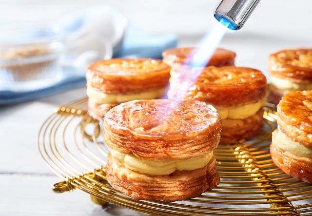 「ブリュレクリーミーアマン」は、クイニーアマンのようなパイ生地に、クリームをサンドしたスイーツ。キャラメリゼしたパイ生地と、チーズショコラクリームのハーモニーを楽しめます。