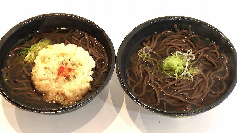黒いそばに濃いつゆが特徴の「駅そば」です。