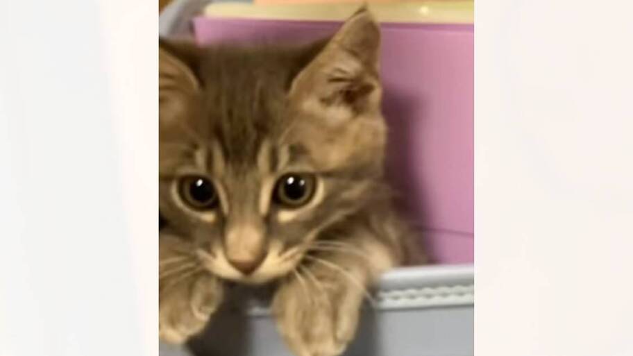 いつものように飼い主さんがお子さんと一緒に過ごしていると、ふとキャットハウスの中から目線を感じたんだとか。見ると、小窓からすごい形相で赤ちゃんを見ているビジュちゃんの姿が。赤ちゃんを凝視するビジュちゃんの目線があまりにも鋭くて一周回って笑えてきたんだそうです。