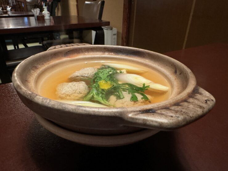 上品なカツオだしが効いたつみれ汁は、これまで味わってきた「登良屋」の美味しいメニューをしっかりとまとめ上げてくれる。その味わいは上品なダシが優しく包み込んでくれるような味わいなのだ。