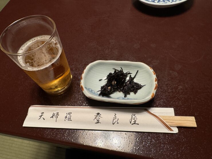 こちらのお店では天ぷらだけでなく、お刺身や丁寧な手仕事の酒の肴も楽しめるのだが、やはりまずは天ぷらをいただいておきたい。
