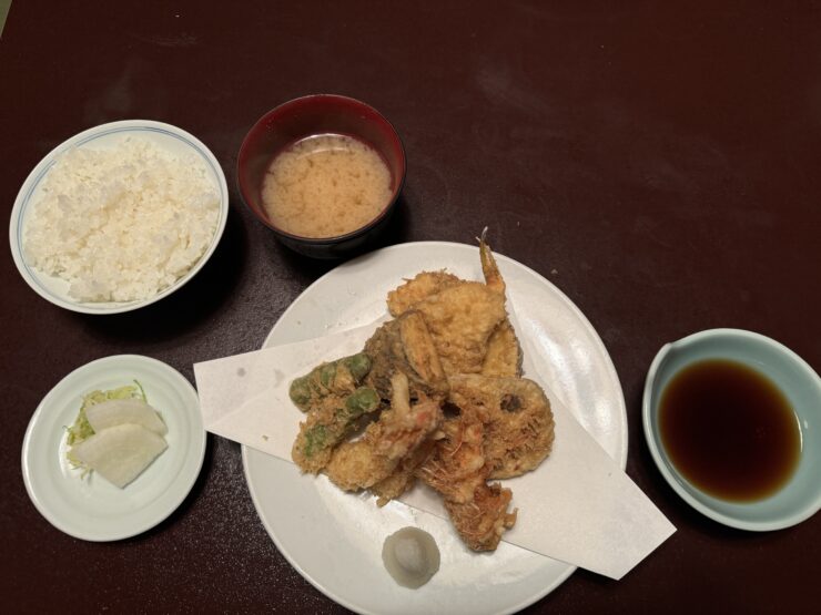 天ぷらにご飯に味噌汁、そして香の物。その全てが1つずつ、丁寧でおいしい。