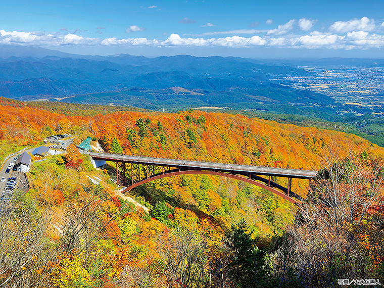 高湯温泉と土湯峠を結ぶ『磐梯吾妻スカイライン』は、全長約29kmの山岳道路。作家の井上 靖氏が名付けた景勝地「吾妻八景」の一つ「つばくろ谷」を不動橋から見下ろすと、錦絵のような景色に思わず息を呑む。