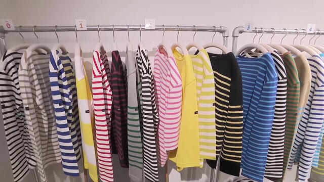 通常はオンラインでオーダーするスタイル。生地の厚さやボーダーの太さ、色の組み合わせまで自由に選べるため、自分だけの“理想の一枚”をオーダーできるんですよ。