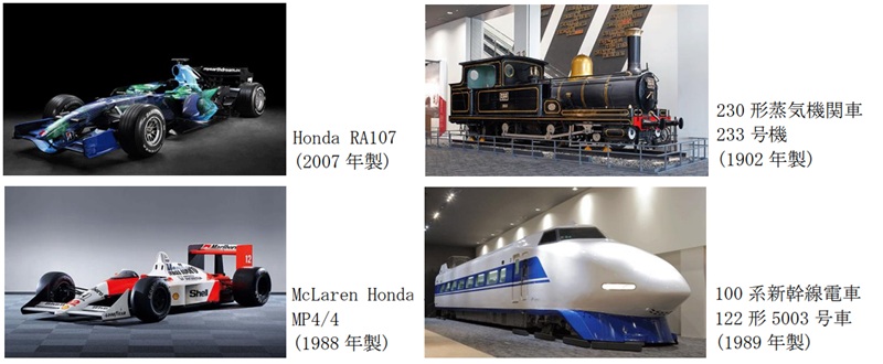 後期(11月17日~12月21日)は、「日本製へのこだわり」をテーマに「Honda RA107」と国産初の量産型蒸気機関車「230形蒸気機関車」、「時代の先駆け」として高効率F1マシンの先駆けとなった「McLaren Honda MP4/4」と快適性に新たな価値を提供した「100系新幹線電車」がそれぞれ展示されます。