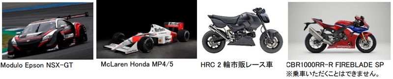 また、SUPER GTで活躍するレーシングマシンModulo Epson NSX-GTや、F1参戦車両のMcLaren Honda MP4/5、鈴鹿8時間耐久ロードレース参戦車のCBR1000RR-R、HRC 2 輪市販レース車両を展示。CBR1000RR-Rを除く車両に関しては、コックピットに乗車でき、記念撮影を楽しめます。