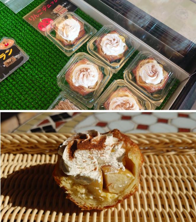 デニッシュ生地にカスタードクリームを絞り、中にはカットしたりんごが4つも入っています。