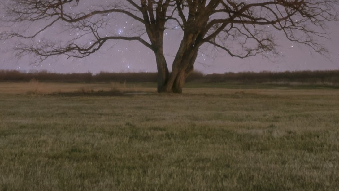 写真を撮影したのは、写真家・HARLOCKさん。旅先の北海道で家族と過ごしていた2022年11月のある夜、天気予報を見ると“あるエリアだけ奇跡的に晴れ”の予報が。急遽車を走らせた先で、このハルニレの木と出会ったといいます。