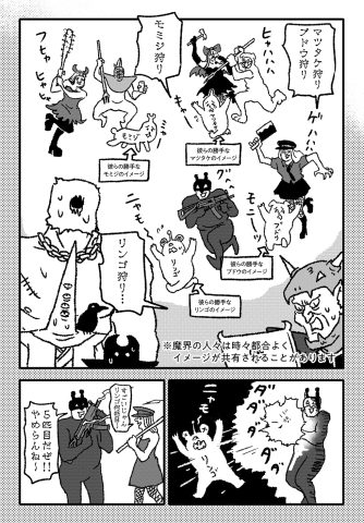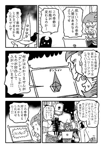 人間たちの様子がいつもと違うことに気づき、それは狩りをするためのパワーアップだったという結論になり──。