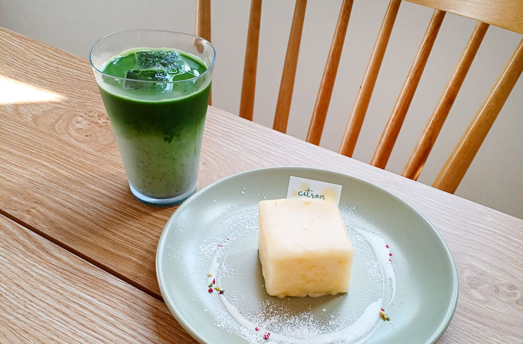 コーヒーが苦手な人には、香り高い良質な宇治抹茶を使用した『宇治抹茶ラテ』がおすすめ。濃厚な抹茶の香りと、まろやかなミルクが溶け合う贅沢なラテに癒やされて。このラテに意外にも合うのがスペシャリテの『ウィークエンドシトロン』。ラテの苦味とミルク感がレモンの甘酸っぱさや爽やかな香りとよく調和します。