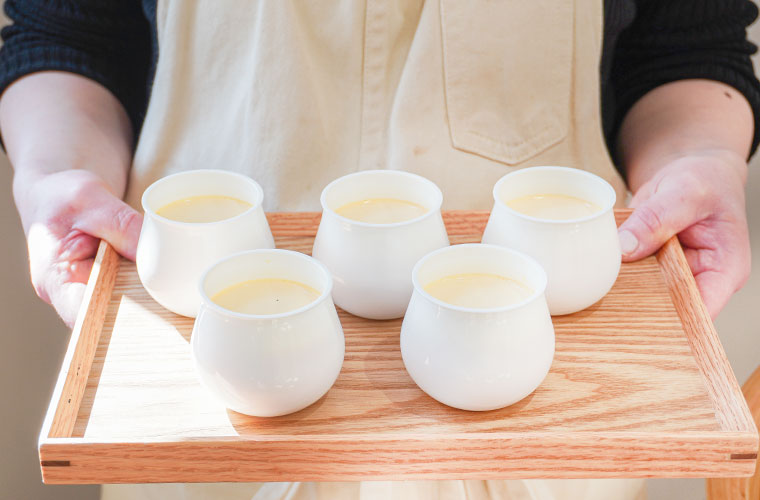 純国産鶏卵「さくら卵」と生クリームをたっぷり使ったプリンは、自宅や友人宅への手土産として人気。固まるか固まらないかのギリギリを攻めた絶妙なやわらかさを追究し、何度も試行錯誤を重ねた渾身の逸品です。