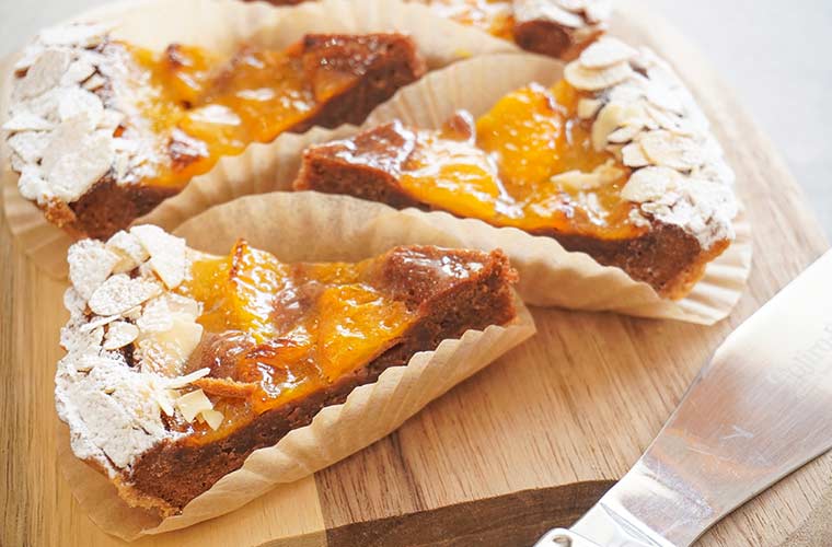 旬のフルーツを使ったタルトも人気。取材日は、国産オレンジが主役の『オレンジショコラのタルト』がお目見え。オレンジの爽やかな酸味とみずみずしさが、カカオの風味とほろ苦さと絶妙にマッチ!意外とさっぱりしているので、甘いスイーツが苦手の人もぺろりと食べられそう。