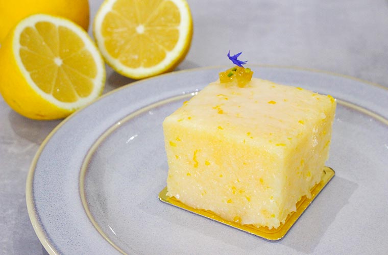 ケーキの主役は、淡路島産のノーワックスレモン。香りの良い「アレンユーレカ・レモン」やジューシーな「マイヤーレモン」など、その時々で最適なレモンを厳選し、皮も果汁もたっぷり使用しています。ケーキをまとうアイシングの中には、しっとりふわふわのスポンジケーキが。スポンジケーキのしっとり感を存分に楽しみたい人は、冷蔵庫で冷やしてから食べてみて。アイシングが冷やし固まることで、食感のコントラストが増しておいしさもアップしますよ。