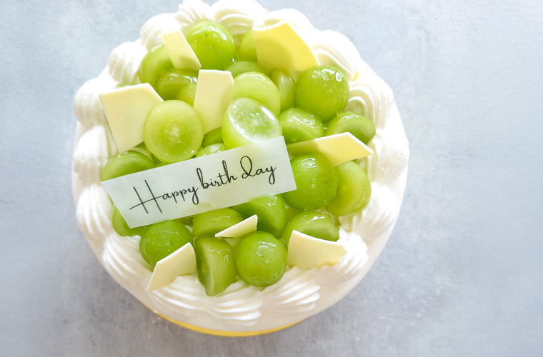 8~10月は、季節限定でシャインマスカットを使ったデコレーションケーキも登場します。デコレーションケーキに使われるフルーツは、その時々の旬によって変わるのも楽しみの一つ。中でもシャインマスカットは、目を奪われるような美しいグリーンカラーが華やかで、特別な日のテーブルを一層彩ってくれます。みずみずしい甘さとふわふわのクリームとの相性も抜群で、食べる人の心を贅沢に満たしてくれること間違いなし!