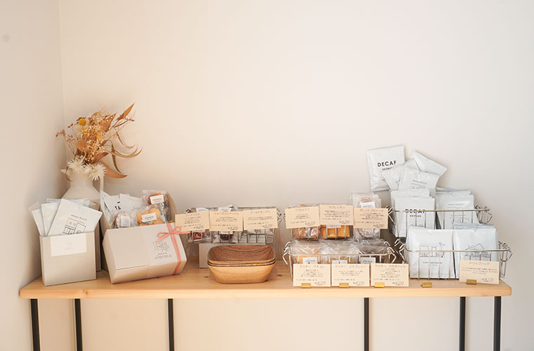 手土産やギフトにぴったりな焼き菓子は、常時8種類ほどが棚にずらり。250円~と手の届きやすい価格もうれしいポイント。いろんな種類を買って、食べ比べも楽しんでみて。