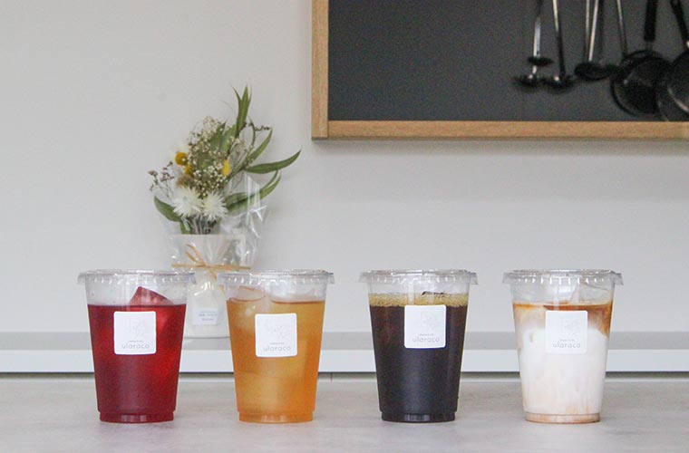 ふわっと崩れるようなやわらかさや、とろけるような口溶けで五感を楽しませてくれる「ularaco」のスイーツ。スイーツに合うよう選ばれたドリンクメニューもテイクアウトが可能で、ドライブや散歩の途中にドリンク一杯、焼き菓子一個から気軽に立ち寄ってみては?
