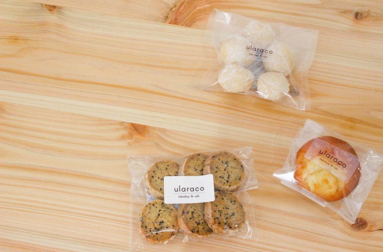 製菓学校を卒業し、神戸のパティスリーで数々の経験を積んだ店主。“春のうららかなひだまりのように、ほっと一息つけるような安らぎのお菓子や空間を提供したい”という思いを込めて「ularaco」と名付けたそう。「毎日食べたくなるような素朴さや素材にこだわったケーキや焼き菓子を気軽に買いに来てほしい」と、“ベイクショップ”というスタイルにもこだわっています。