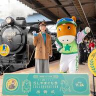 山口ふるさと大使の村重杏奈、『SLやまぐち号』出発式でウインズ小郡20周年を祝福