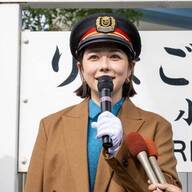 【写真】JR新山口駅(山口市)で行われた『ウインズ小郡開設20周年記念 SLやまぐち号コラボレーションイベントヘッドマーク披露、並びに出発式典』に出演した村重杏奈(全12枚)