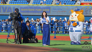 トークセッションの後はいよいよ出発式。ホームには出発を見送るため400人の観衆が詰めかけた。間近でSLを見ると村重は「迫力がすごいですね。こんなに大きいんだ」と驚き顔。村重の合図で「SLやまぐち号」が汽笛を響かせながらゆっくりと発車し、「乗っている方がみなさん楽しそうだったので村重も乗りたかったです」と見送った感想を言葉に。