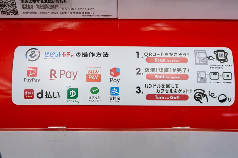 ガチャのためにJTBに入るのは少し気が引けましたがご安心を。入ってすぐなので気軽に回せます!決済方法は「ピピっとガチャ」専用のQRコード決済のみで、現金は使えません。PayPayやd払いなど主要なキャッシュレスに対応。価格は1回300円です。